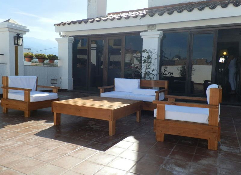 Este cuarto de estilo colonial, uno de los preferidos de nuestros visitantes, tiene acceso a la terraza. Posee baño y minibar separados de la habitación principal, la cual esta provista con largas cortinas que cubren el ventanal de roble que remplaza la pared dándole una vista maravillosa a la habitación. Aquí puede disfrutar tanto de días soleados para broncearse en reposeras dispuestas en la amplia terraza como para pasar una noche única bajo las estrellas.